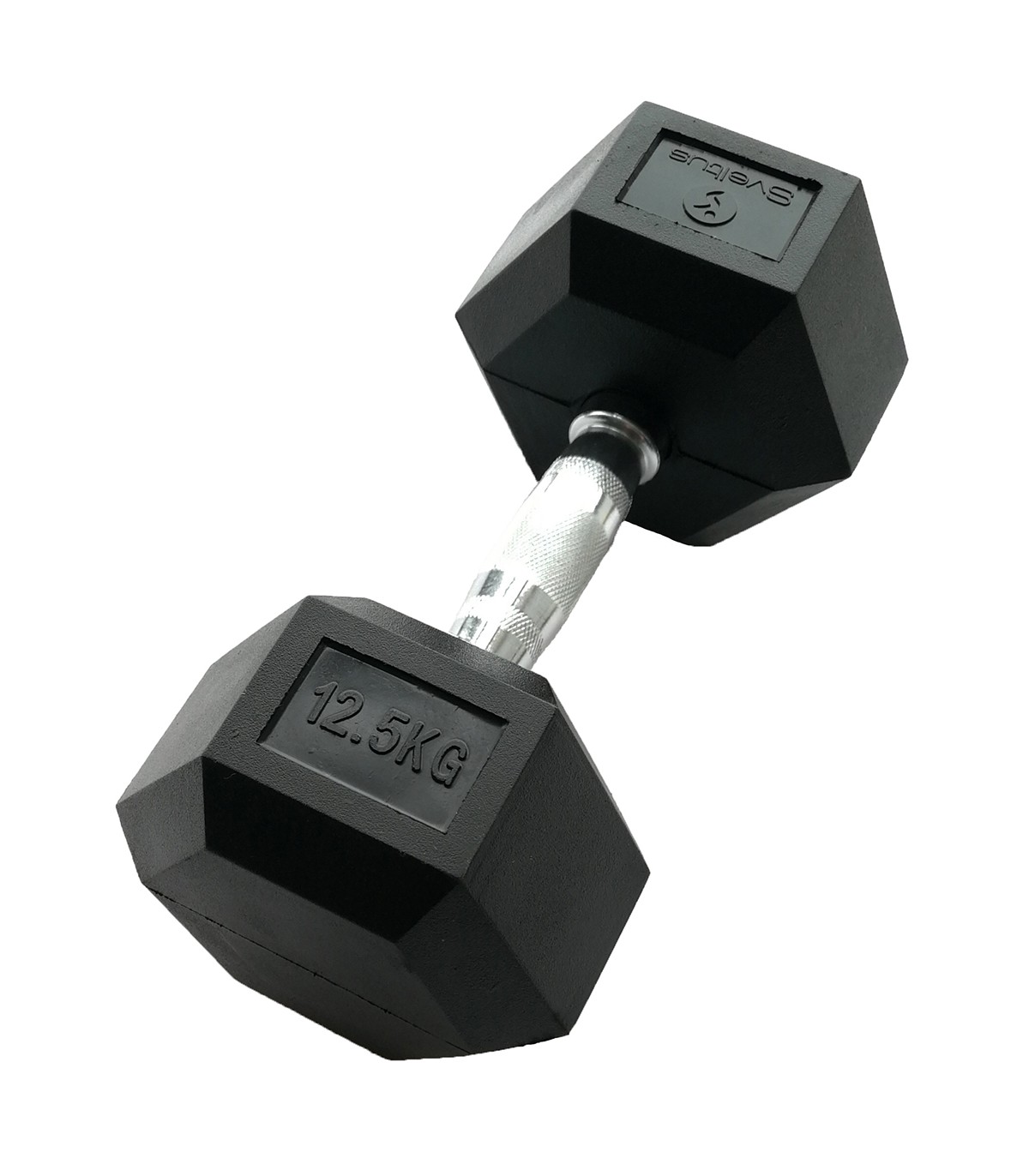 Its hexagonal shape prevents it from rolling (6 sides). It is covered with a highly resistant and durable layer of rubber that protects it from shocks and minimizes noise. The chrome ergonomic handle has a non-slip zone for a perfect grip.