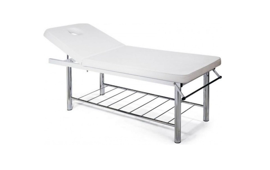 Features:• Length: 186 cm• Width: 70 cm• Height: 72 cm• Colors: White, Blue, Black• Structure: Steel with stainless finish• Thickness: 8 cm• Table weight: 22 kg• Working load capacity: 250 kg• Surface made of polyurethane leather• Adjustable backrest in steps