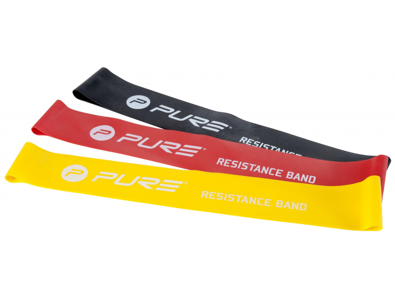 Yellow - light, red - medium and black - heavy. Constructed from high quality, durable latex. Small and portable for travel and packing in a workout bag. The bands are an effective and versatile training tool that can be used to increase strength and stability in the upper and lower body. They are ideal for lateral movement exercises, hip and glute activation, and shoulder stabilisation.