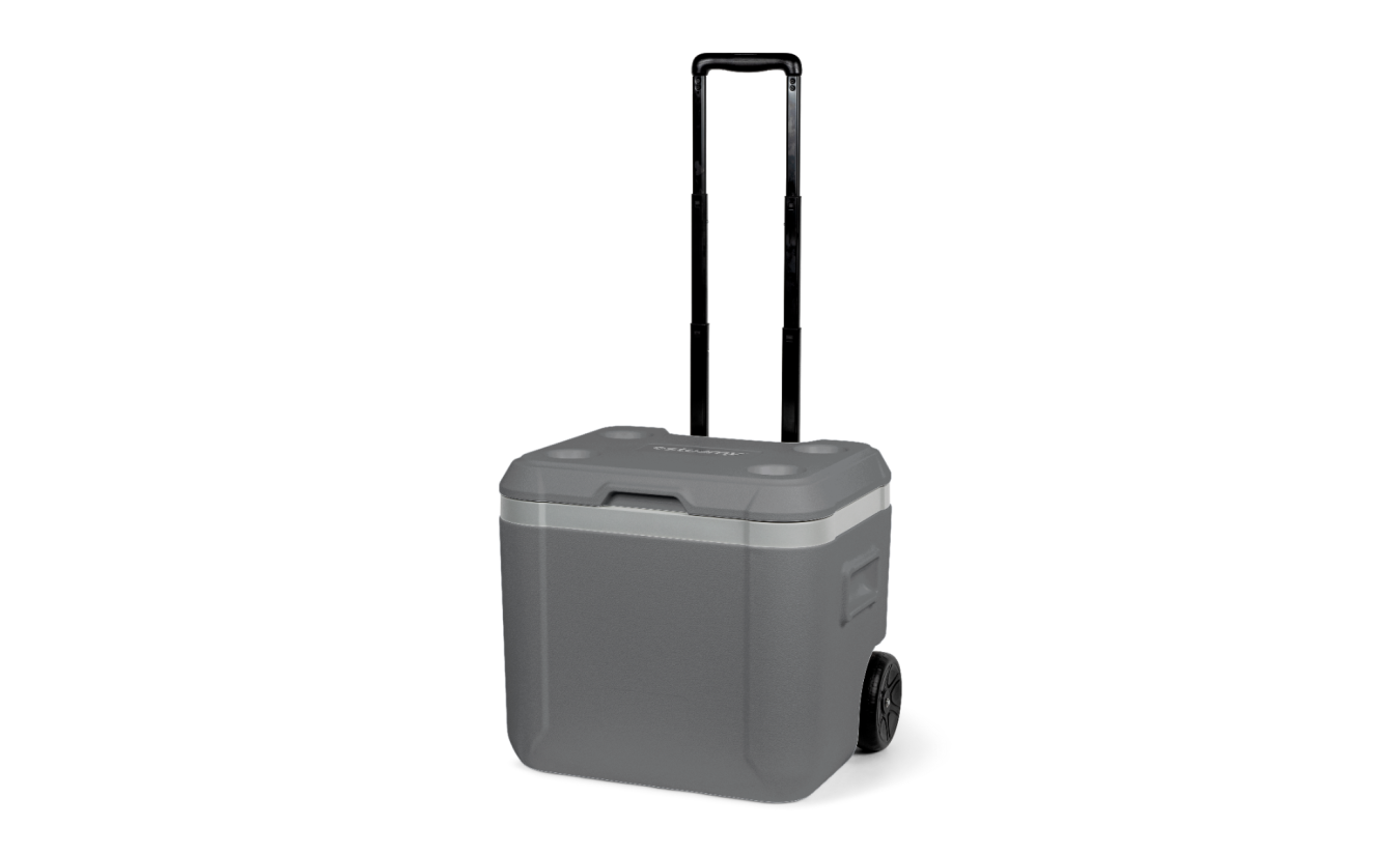 Steamy Cool 52L is a modern and easy-to-handle cooler box, equipped with wheels. Thanks to the wheels and telescopic handle, the cooler can be easily moved, even when fully loaded. Its tall design also allows the transport of 1.5-liter bottles in an upright position.