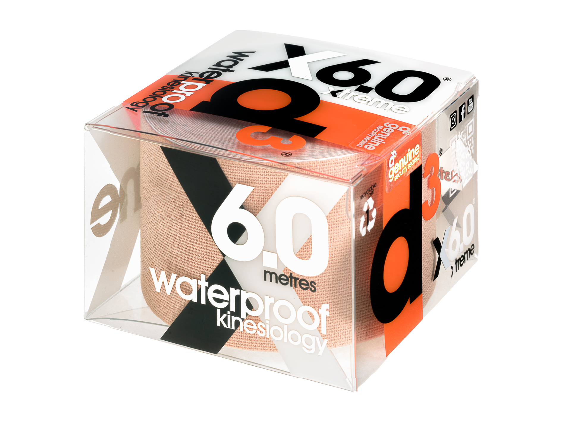 The X6.0 is a synthetic kinesiologic tape designed by d3 to provide the same performance as the K6.0 model. However, this version is specifically designed for athletes excelling in wet winter conditions or water sports enthusiasts.