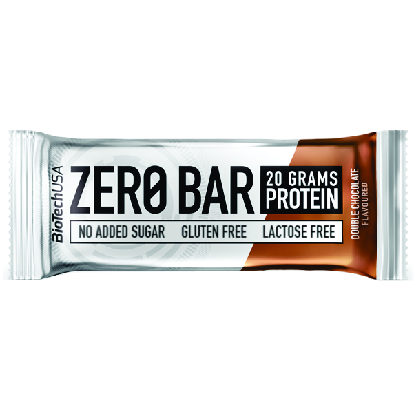 Protein bar with a high protein content, without added aspartame, lactose- and gluten-free, with sweeteners.